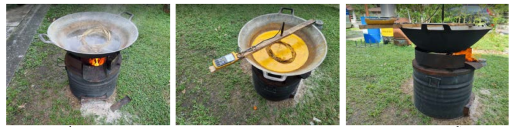 Figure 3 illustrates the application of the TLUD biomass stove for dyeing pandanus leaves using turmeric.