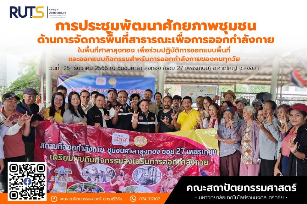 The Faculty of Architecture at Rajamangala University of Technology Srivijaya, in collaboration with Hat Yai Municipality and the Southern Architects Commission under the auspices of the Association of Siamese Architects, has organized the Healthy City and Co-Design Initiative.
