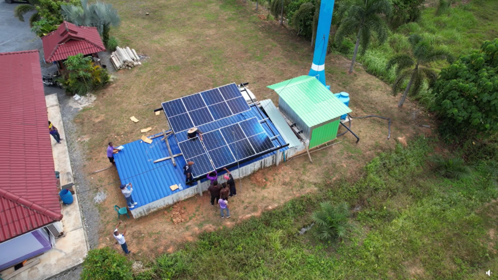 On May 12, 2023, a project was initiated to design and construct a solar power generation system for water pumping in the production system of the Wang Sai Village Fund. This project was carried out for the Wang Sai Community Financial Institution in Moo 11, Khao Ro Subdistrict, Thungsong District, Nakhon Si Thammarat Province. The institution operates two factories for processing fresh latex: the Standard Thai Rubber 5L (STR 5L) factory and the rubber product processing factory. The project is managed by Prasert Nontakarn, Sermsak Koedwan, Rungroj Jeenduang, Sutaporn Ketuphan, Vichai Liwiwatnakhun, Sakda Musiknilpan, and Supachai Unjaeroen.