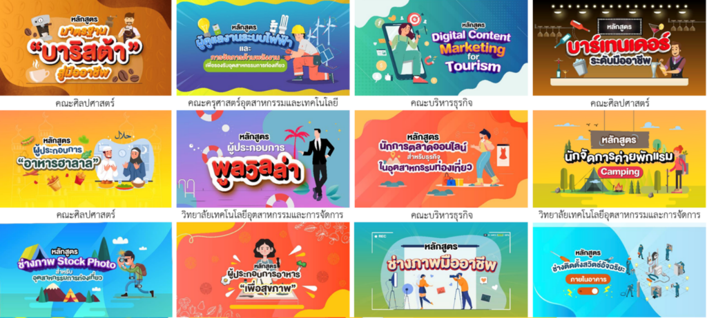 Universities have launched programs to enhance the workforce in the coastal tourism industry. This includes training to improve skills (Reskill, Upskill, and New Skill) start form 20 premium courses increase to 40 premium courses on the RUTS MOOC Platform in 2023. The theoretical foundation is provided through modules for short-term competency-based courses. Practical training takes place at three centers: