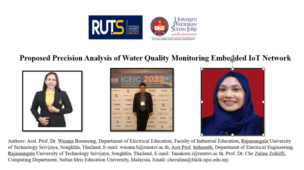 In 2023, Rajamangala University of Technology Srivijaya (RUTS) in Thailand collaborated with Universities Partnership for the goals of sustainable development around research relating to SDG 1 to 17. For example, RUTS in collaboration with Universiti Pendidikan Sultan Idris (UPSI) in Malaysia jointed research publication in September 2023. Asst. Prof. Dr Wasana Boonsong who is lecturer at the Faculty of Industrial Education and Technology, Asst. Prof. Tanakorn Inthasuth as lecturer in Telecommunication Engineering Programme, Faculty of Engineering at the RUTS and Prof.Dr Che Zalina Binti Zulkifli as a lecturer from the Faculty of Computing and Meta-Technology,UPSI jointed a research publication in the topic of “Proposed Precision Analysis of Water Quality Monitoring Embedded IoT Network”. The research illustrated that the precision analysis of water quality monitoring embedded Internet of Things (IoT) Network whereby the proposed invention is a wireless embed water monitoring system with multi-sensor. The highlight of a measuring instrument is its precision. Moreover, this research demonstrated that its calibration regarding the positive potential of the hydrogen ions (pH). The procedures of precision calibration are related to programming and actual measurement in several tests. The results found that the pH sensor with IoT communication only has a significantly lower erroneous of 0.77%.