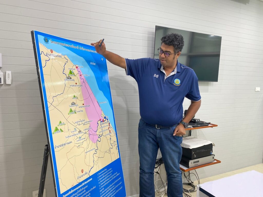 On May 19, 2023, discussions were held with the Water Allocation Division of the Pattani Irrigation Project to support the Phru Khae Khae Development Project (a royal initiative). The project aims to enhance water management by integrating innovative technology for monitoring water quality and analyzing agricultural areas. This approach supports systematic water management to adapt to environmental changes.
