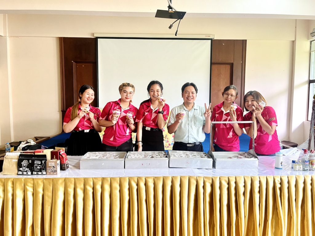 Students from the Food Management and Services program organized refreshments for a meeting focused on the “Household Debt Reduction Income Generation Project,” held on October 9-10, 2023. The dessert menu included vanilla custard tarts with fresh fruits, mangosteen macarons, and banoffee pie.
