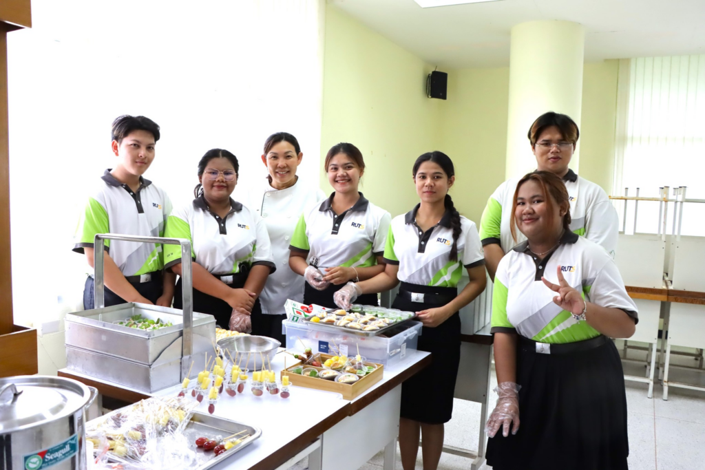 The event was designed to integrate teaching activities from the International Cuisine and Thai Desserts courses, providing students with practical experience in preparing nutritious dishes. The meals prepared highlighted the use of fresh, wholesome ingredients known for their health benefits, such as whole grains, lean proteins, fruits, and vegetables.