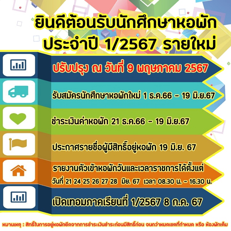 Picture 1 Student Dormitory Schedule 1/2024 at Rajamangala University of Technology Srivijaya, Sai Yai Campus.