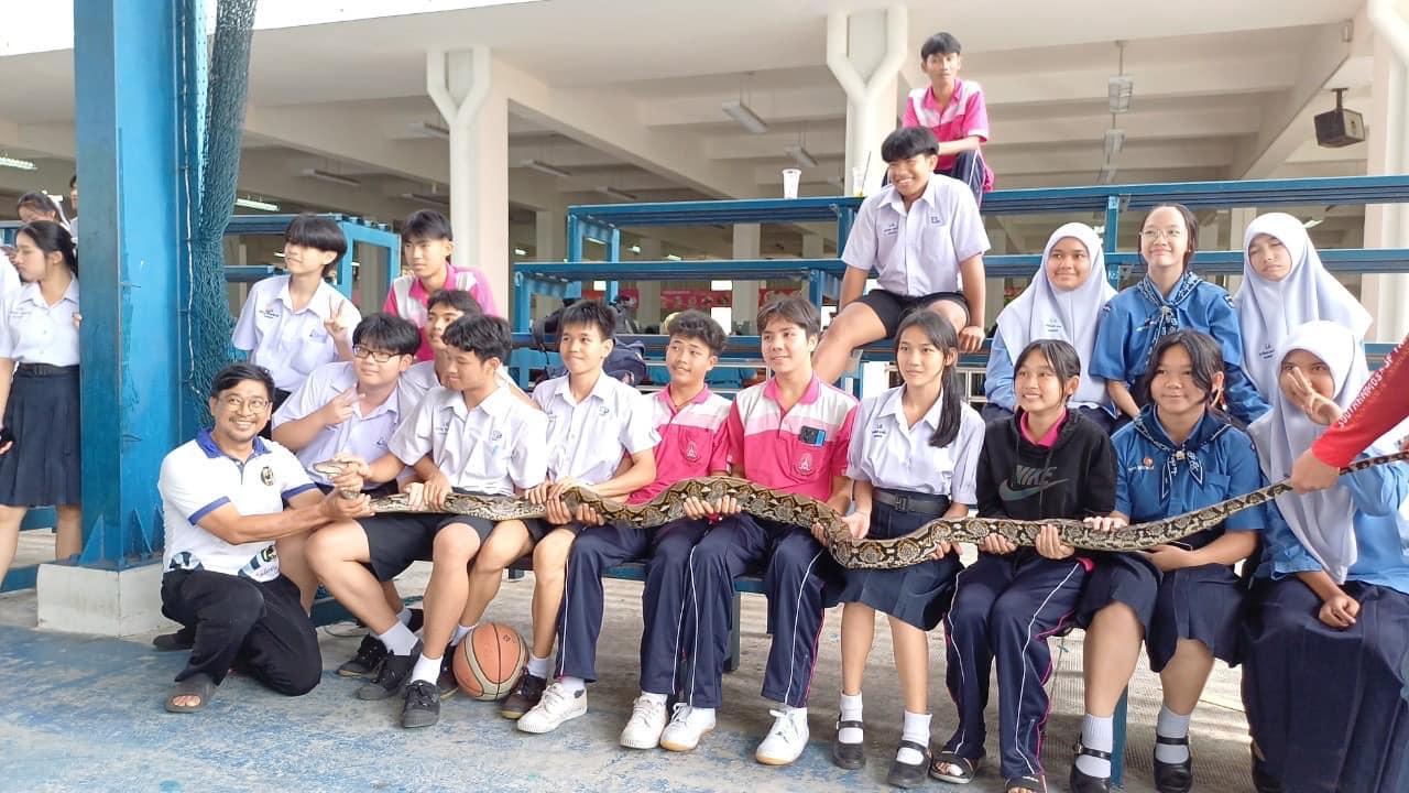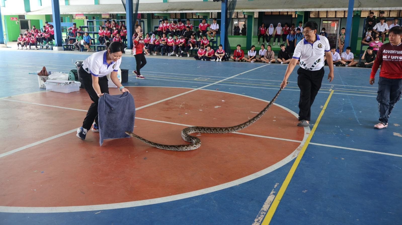 The second activity took place on 10 July 2024 with high school students from Betong Wiraratprasan School and Betong Industrial and Community Education College. This session highlighted the ecological importance of snakes, their role in controlling pests, and their place in maintaining ecosystem balance. Students were introduced to venom systems such as neurotoxin, haemotoxin, myotoxin, and cytotoxin, helping them understand both the risks and scientific fascination of snakes. Interactive demonstrations on safe behavior during snake encounters and basic first aid for snakebite victims were included to equip students with practical life skills. By engaging youth, the project fostered respect for biodiversity and encouraged young people to become ambassadors for conservation in their communities.