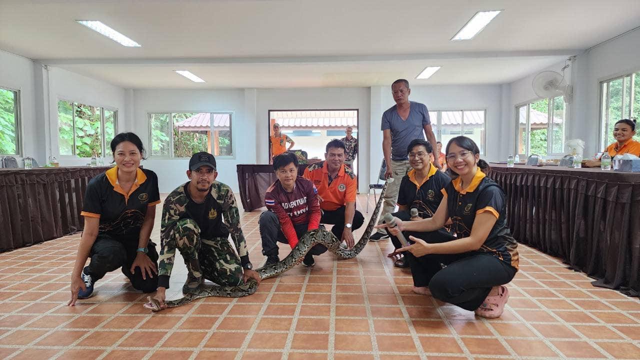 Rajamangala University of Technology Srivijaya, in collaboration with The Secret of Lovely Snakes YouTube channel and the Betong Animal Lover Club, organized the Snake Knowledge and Skills Project in Yala Province. The project was designed to reduce conflict between humans and snakes while promoting the conservation of biodiversity and ecological balance. Recognizing that snakes are often misunderstood and feared, the project aimed to provide accurate knowledge, practical handling skills, and positive attitudes toward these important animals. The activities were developed to meet the needs of different groups within the community who frequently encounter snakes in their work or daily lives. By focusing on education and outreach, the project directly supported SDG 15: Life on Land, which emphasizes the protection, restoration, and sustainable use of ecosystems.