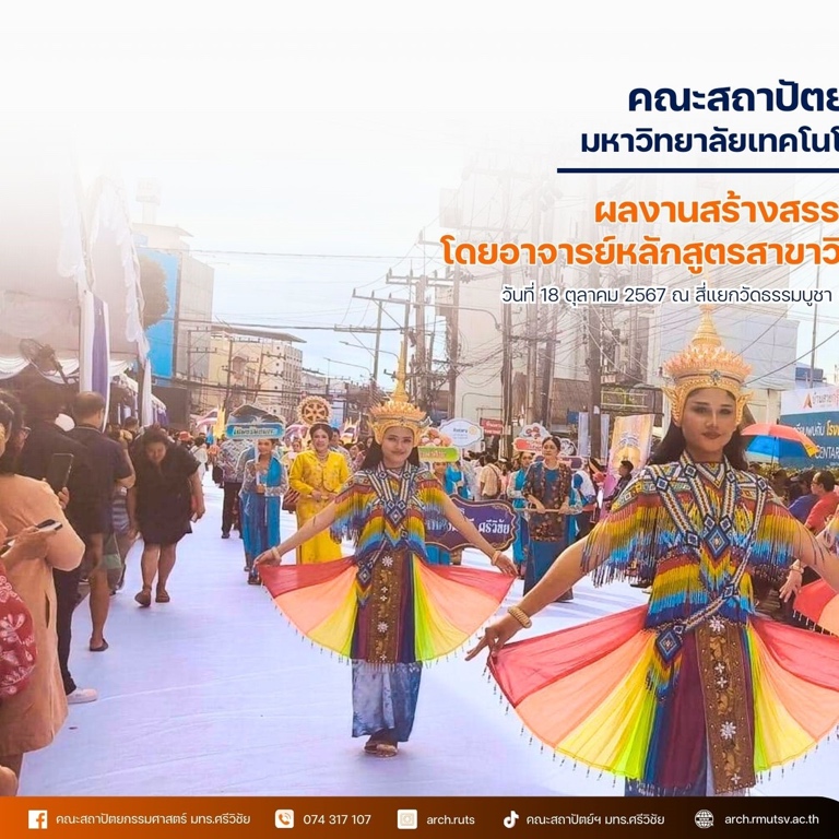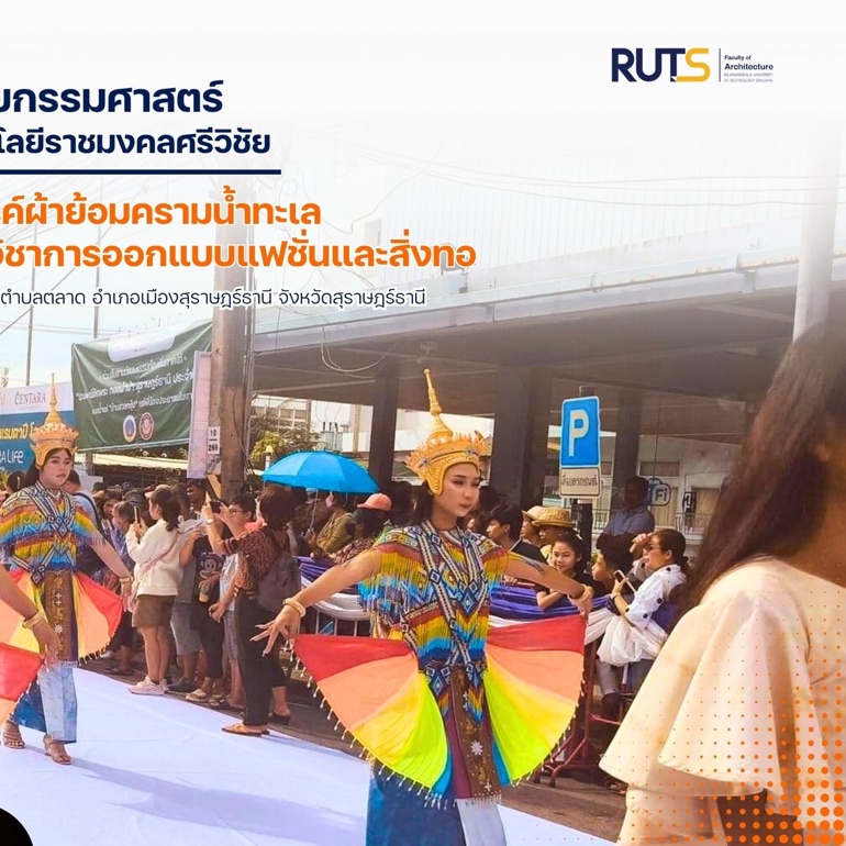 Creative sea-indigo–dyed textile works by lecturers from the Fashion and Textile Design Program, Faculty of Architecture, Rajamangala University of Technology Srivijaya (RMUTSV), were presented in collaboration with the Rotary Club of Srithapee, the Jai Bangchana community (Bangchana Subdistrict, Mueang District, Surat Thani Province), and Suratthani Vocational College at the opening ceremony of the “Surat Thani Buddhist Lent Boat Procession, Kathin Robe Offering, and Long-Boat Race for the Royal Trophy 2024.”
