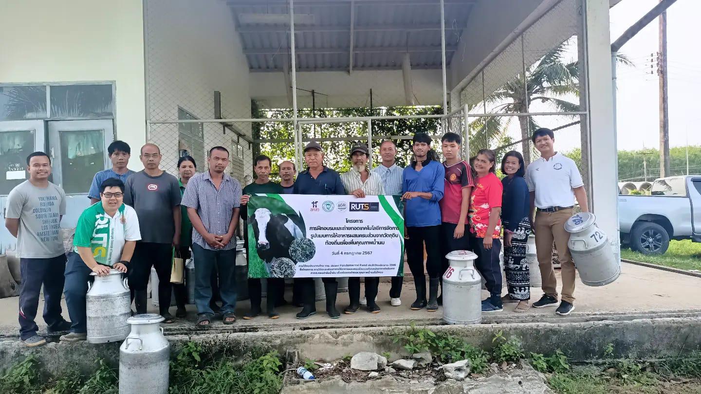 Following the research, the project team extended their impact through a Training Workshop on “Dairy Food Production from Local Ingredients for Improved Milk Quality” on 4 July 2024. The workshop aimed to transfer the research outcomes to livestock farmers and agricultural entrepreneurs in local communities. Participants learned how to utilize locally available raw materials to formulate balanced dairy feed and enhance milk quality. The researchers demonstrated practical techniques for producing PTMR-based dairy feed, feed preservation, and on-farm feed management. The training also emphasized the importance of nutrition in animal health, milk composition, and production efficiency. Farmers gained both theoretical and hands-on experience, empowering them to apply scientific knowledge in their daily farming practices. This outreach activity built a strong bridge between the university and the agricultural community, promoting sustainable livestock systems in southern Thailand. By integrating research with real-world application, the project successfully combined academic innovation with community development. Through these efforts, RUTS continues to foster sustainable agriculture that benefits both farmers and the environment.