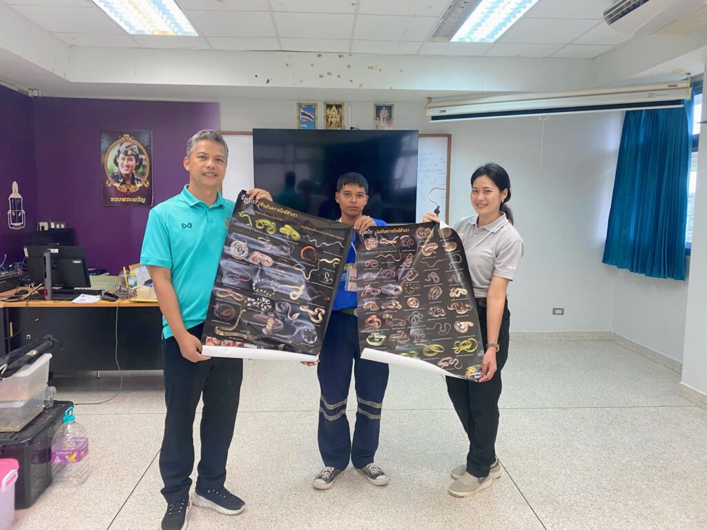 A second activity with a similar focus was organized at Thung Song Wittaya School, Nakhon Si Thammarat Province. Like the first program, this event introduced students to the ecological importance of snakes and their role in biodiversity. The lessons on venomous snake classification were repeated, ensuring that students understood the risks associated with different species. The venom system was again explained with clear examples, reinforcing scientific knowledge about how toxins affect humans and prey. Demonstrations of safe behavior during snake encounters were provided, with teachers and trainers guiding students step by step. Emphasis was placed on keeping calm, avoiding unnecessary harm to snakes, and contacting trained personnel for help. Students practiced basic first aid knowledge for snakebite, which is a critical life skill in rural and suburban areas. The activity was designed to be interactive, encouraging students to ask questions and share their experiences with snakes. By repeating these activities in multiple schools, the project reached a broader audience and built consistency in learning outcomes. The success of the Thung Song Wittaya program reflected the strong interest of students in both safety and biodiversity. Together, both activities strengthened the message that snakes should be respected as valuable parts of nature rather than feared without reason.