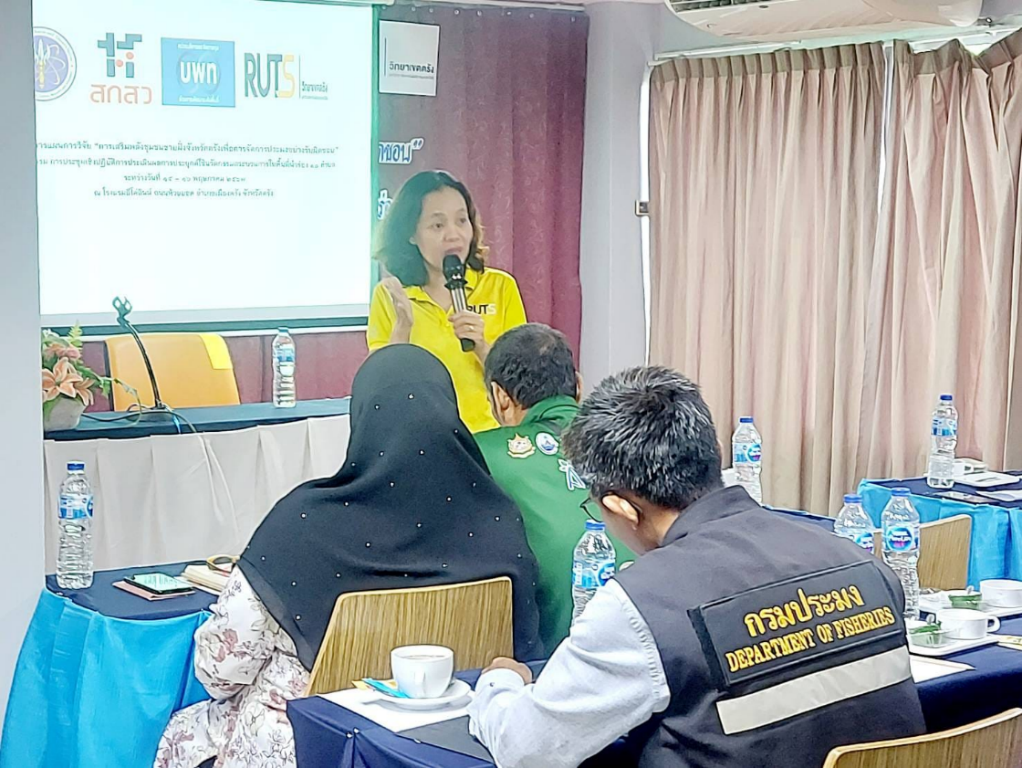RUTS, in collaboration with the Trang Provincial Fisheries Office, Department of Fisheries, also organized a knowledge-sharing program for local fishers on sustainable small-scale fisheries standards. The event was part of the “Blue Economy Initiative” aimed at expanding the Blue Swimming Crab Bank project to enhance coastal productivity and resource value in Trang Province.