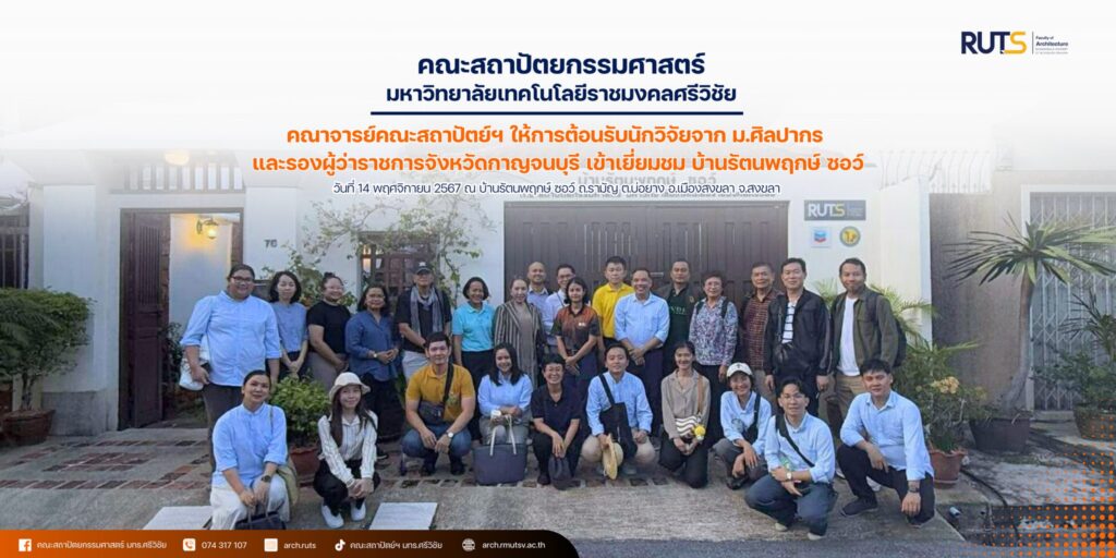 On November 14, Assoc. Prof. Dr. Kriangkrai Kerdsiri and a team of researchers from Silpakorn University together with Mr. Wutthipong Suphakwanich, Deputy Governor of Kanchanaburi Province, along with the Old Town Committee. Went to the area of the old city of Songkhla to study in order to use the information to prepare a development plan for the old city of Kanchanaburi. The agenda to study and use the information to prepare a development plan for the old city of Kanchanaburi. In this case, the group was interested in visiting Baan Rattanaphruek Saw to study conservation work of faculty.