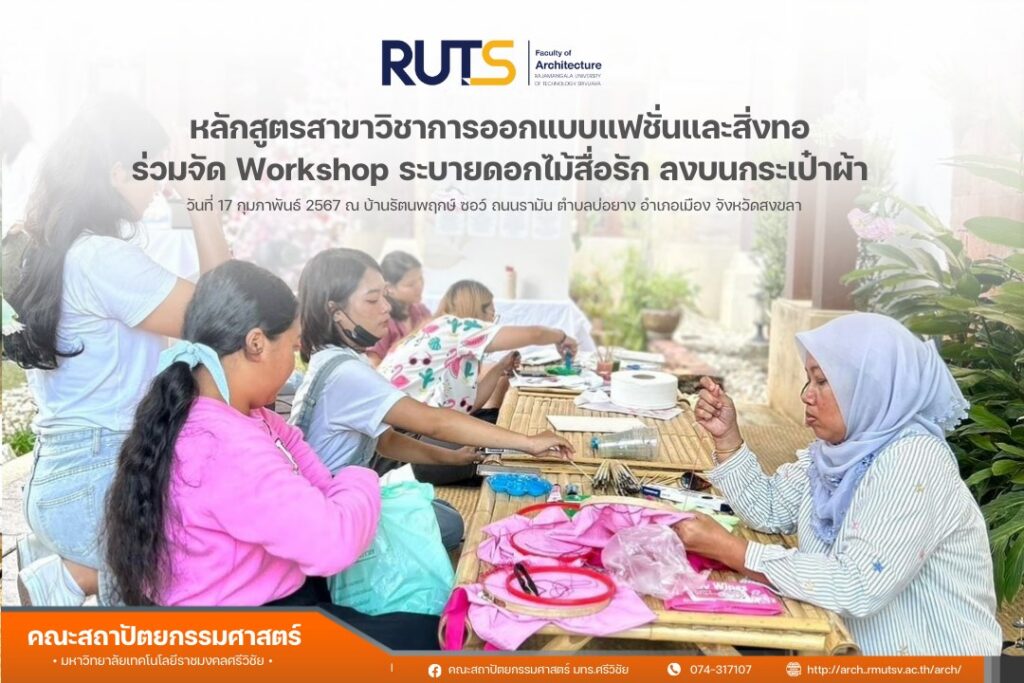 On 17 February 2024, lecturers and students from the Fashion & Textile Design Program organized a “Love in Bloom” workshop painting floral motifs on fabric tote bags at Baan Rattanaphruek Saw, Raman Road, Boyang Subdistrict, Mueang Songkhla District, Songkhla Province.