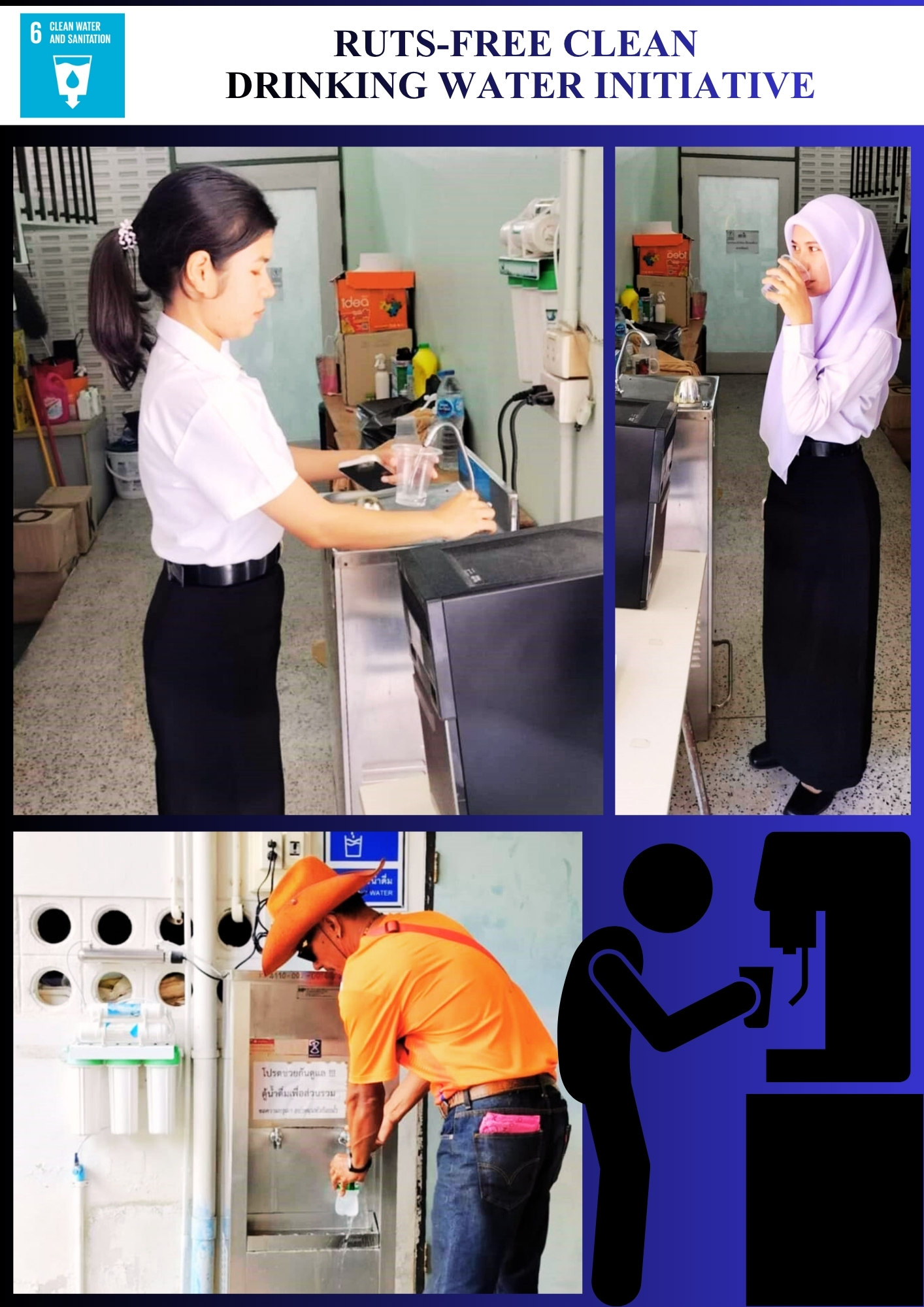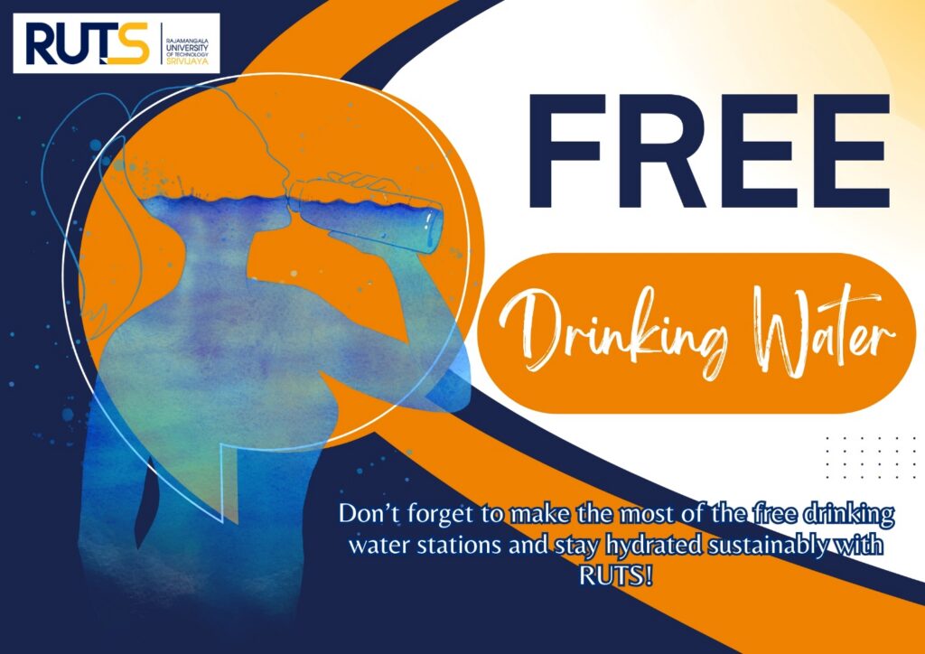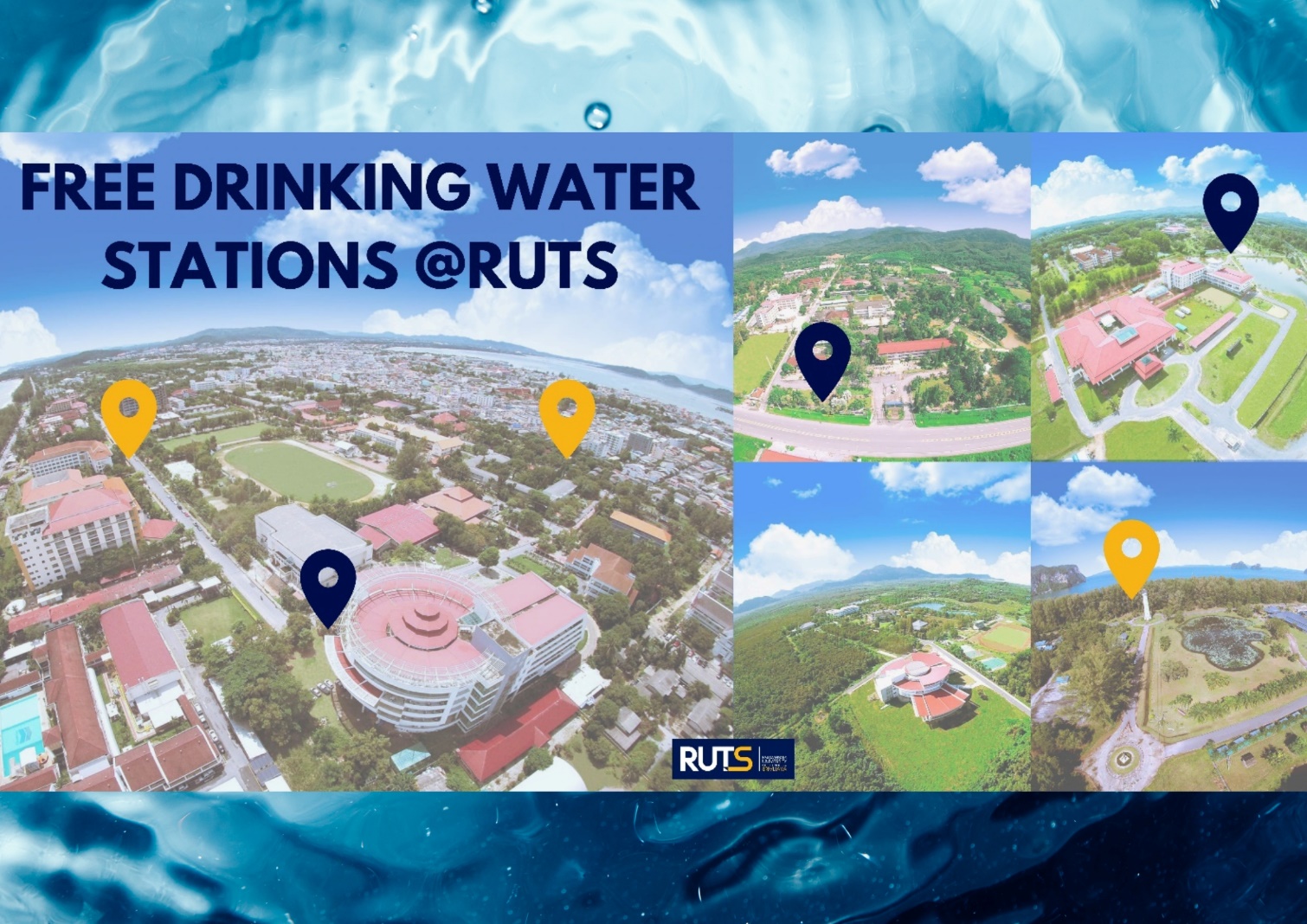 Rajamangala University of Technology Srivijaya (RUTS) has established around 50 free, clean drinking water stations across its five main campuses—Songkhla, Nakhon Si Thammarat (Thung Yai, Sai Yai, and Khanom), and Trang. These stations are provided for students, staff, visitors, and members of the local community who visit or use university services, ensuring that everyone has access to sufficient and safe drinking water to meet their daily needs.