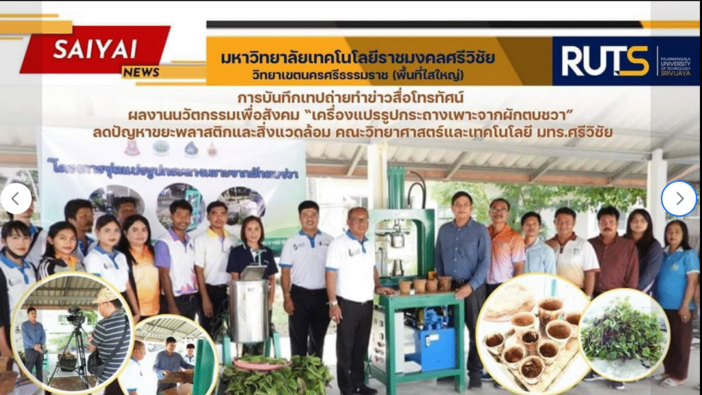 The teaching and learning activities under the supervision of Dr. Prasert Nonthakan, Faculty of Science, Rajamangala University of Technology Srivijaya (RUTS), are aligned with SDG 15.4.3.2, which focuses on promoting the conservation and sustainable use of natural resources. Students participated in a practical training project on producing plant pots from water hyacinth, an aquatic weed that causes ecological problems. Transforming this waste material into useful biodegradable pots not only reduces environmental pollution but also promotes resource utilization through the Circular Economy approach. This practice integrates environmental awareness with hands-on learning, enabling students to understand the importance of sustainable resource management and ecosystem conservation through scientific application.