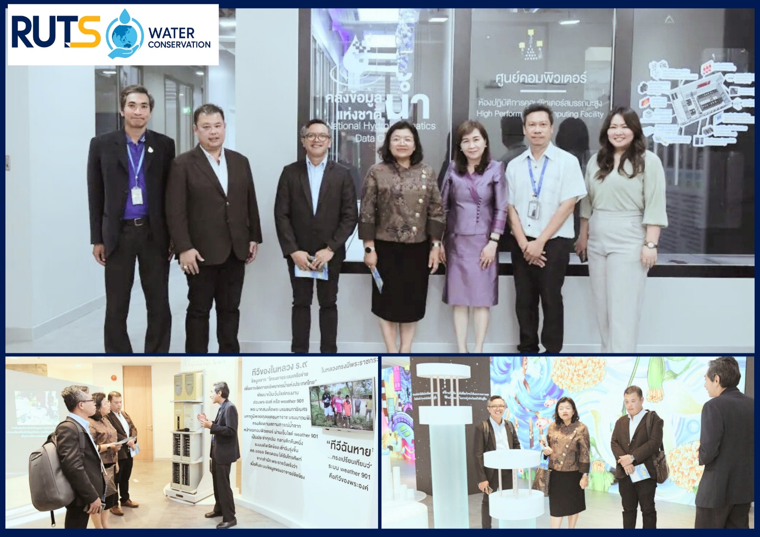 On May 2, 2024, Associate Professor Dr. Kwanhathai Jaipiam, Vice President of RUTS Songkhla Campus, led a group of faculty members to visit HII for discussions on academic cooperation and to explore new water-related technologies. The delegation was warmly welcomed by Dr. Roiboon Rasmiteat, Director of HII, together with the institute’s executives and technical staff. During the visit, the RUTS team explored the exhibition titled “From Sky, Through Mountains, to the Great River,” which showcases Thailand’s integrated approach to water resource management. They also observed the operation of High-Performance Computing (HPC) technology, an advanced system used by HII for analyzing large-scale hydrological and environmental data to support decision-making in water management.