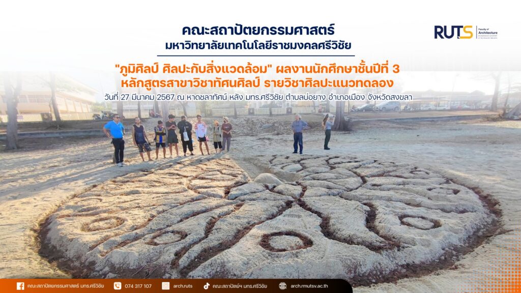 The Visual Arts Program, Faculty of Architecture, Rajamangala University of Technology Srivijaya (RUTS), organized an outdoor learning activity for third-year students in the Experimental Art course under the theme “Land Art: Environmental Art and Landscape.”