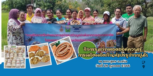 The university has transferred hatchery and broodstock management knowledge to local fishing communities, developing recirculating water systems that ensure optimal water quality for juvenile crabs. Post-harvest research focuses on reducing losses through proper cold storage, hygienic handling, and grading techniques that increase product value. Traceability systems were introduced to enhance consumer confidence in product origin and safety. The project has also expanded into value-added processing such as ready-to-cook crab meat, crab cakes, crab-shell broth, and biofertilizers from processing waste for ensuring that every part of the crab is fully utilized. Collaborations with local fishers and community groups have led to branded local products, creative marketing initiatives, and eco-friendly packaging that highlight the harmony between marine conservation and traditional livelihoods. Training programs for farmers and youth cover hatchery operations, safe processing, green marketing, and eco-tourism to create integrated learning from production to distribution. Ultimately, this project not only safeguards the blue swimming crab population but also enhances community income, reduces production waste, and strengthens the competitiveness of local fishery products at both regional and national levels.