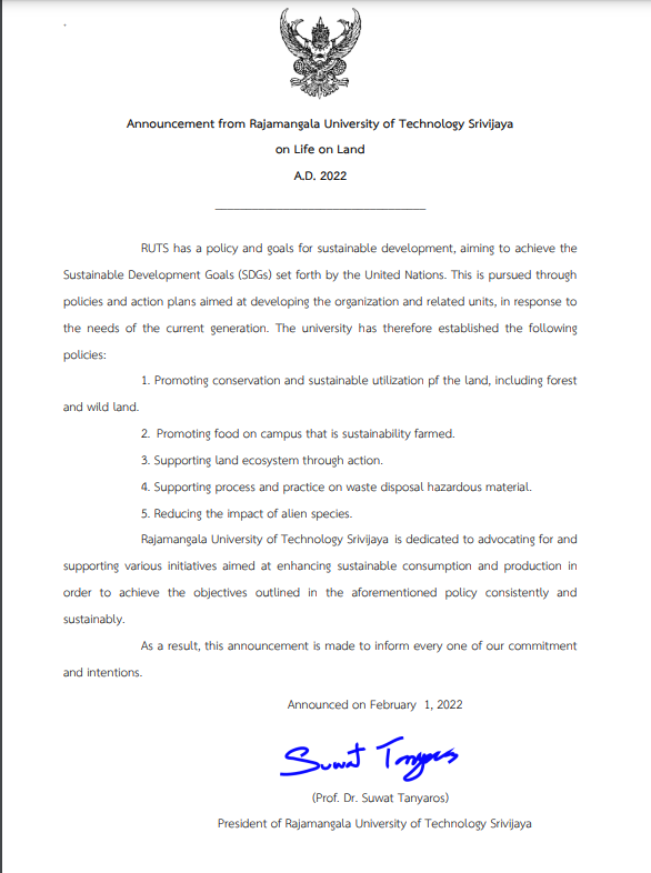 Ultimately, the Sago Palm Value Chain Project serves as a model of RUTS’s policy on “Conservation Together with Utilization.” It demonstrates how research can lead to real-world applications that improve both community well-being and environmental sustainability. Through the project, researchers and community members collaborate to restore wetland habitats while creating new economic opportunities. The success of this initiative highlights the importance of linking academic research with community-based implementation. The project supports Thailand’s Sustainable Development Goals (SDGs), particularly in the areas of biodiversity conservation, responsible production, and poverty reduction. By promoting ecosystem health and responsible use of natural materials, RUTS contributes to national and regional sustainability efforts. Furthermore, this work inspires students to pursue applied research that connects classroom learning with practical conservation. It also builds a strong foundation for future biodiversity-based enterprises in southern Thailand. The university remains committed to extending this model to other provinces to strengthen Thailand’s green economy.