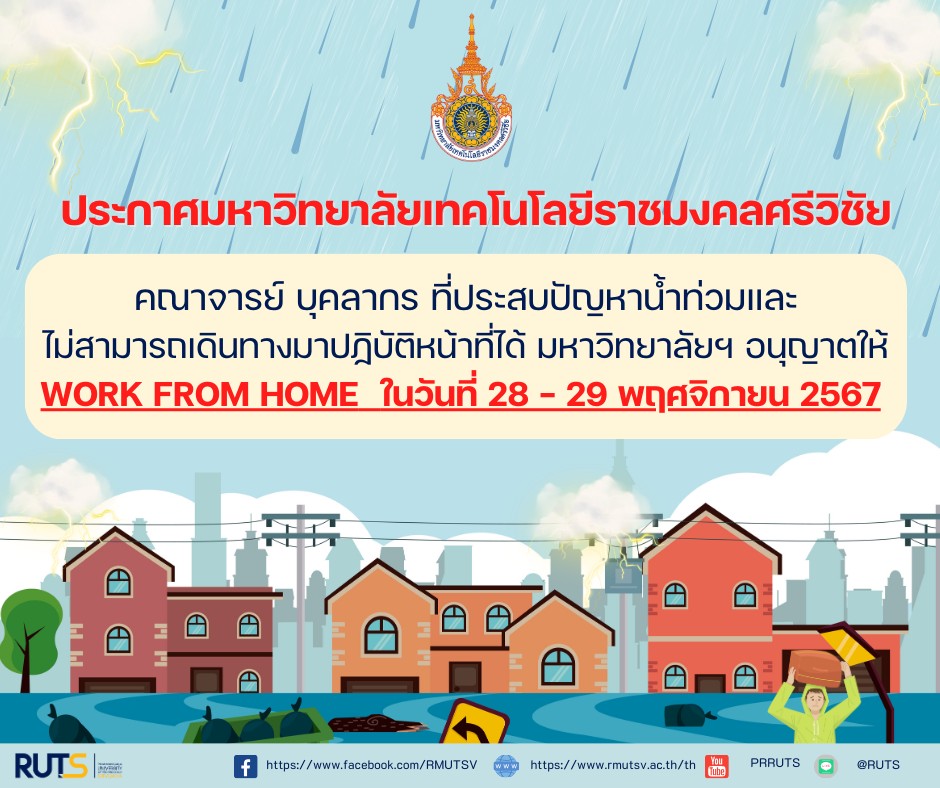 Rajamangala University of Technology Srivijaya (RMUTSV) permits faculty members and staff who are affected by flooding and unable to travel to campus to work remotely