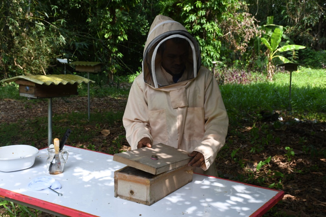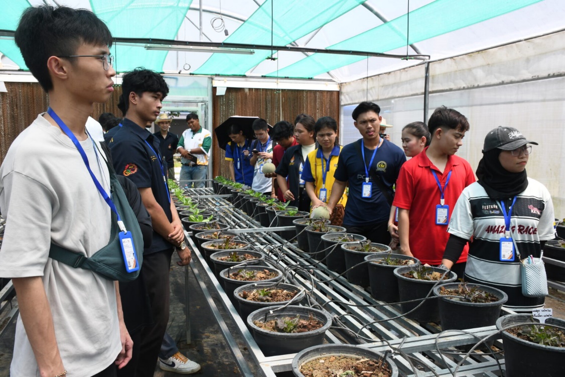 One of the main focuses of the camp was the integration of technology with sustainable agriculture. Participants engaged in workshops covering topics such as solar cell systems, agricultural machinery management, smart farm systems, and stingless bee farming. Each workshop provided students with hands-on experiences, from setting up solar panels to applying smart technology in farm management. The solar energy workshop demonstrated how renewable energy can power agricultural processes efficiently. In the smart farm session, students learned how data sensors and automation can improve crop yield while conserving water and energy. The agricultural machinery session focused on equipment management and maintenance to support productivity in local farming systems. Meanwhile, the stingless bee farming activity taught participants how to raise bees sustainably for pollination and honey production, which directly supports biodiversity. All activities were conducted on the RUTS Rattaphume Campus farm, allowing students to apply theoretical knowledge to real-life practice. The combination of technology, ecology, and community engagement created a meaningful learning experience for everyone.