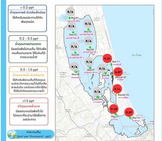 4) Practical applications and ongoing monitoring: Salinity levels were tracked daily, and when values exceeded established thresholds, appropriate actions were taken. The water management network coordinated with the Ranot-Klasesin Operation and Maintenance Project to request pumps for transferring fresh water from Songkhla Lake to natural reservoirs. Additionally, the RUTS team expanded information dissemination through social media channels to improve coordination and provide ongoing support to the agricultural groups.