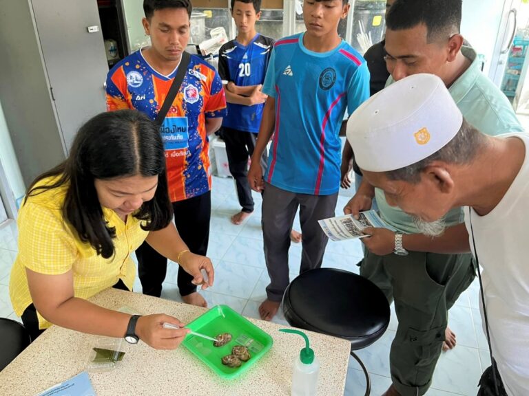 The program also included knowledge-sharing activities and skill training on 26 June 2024 for local oyster farmers in Ban Bang Kang khao community, Khao Mai Kaeo Subdistrict, Sikao District, Trang Province.