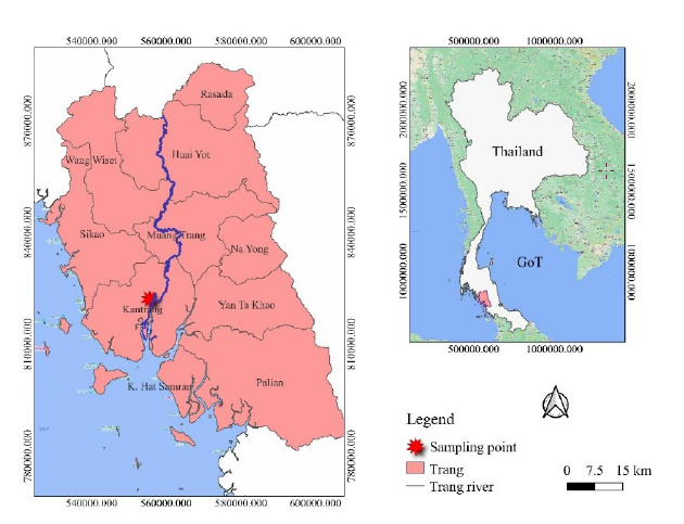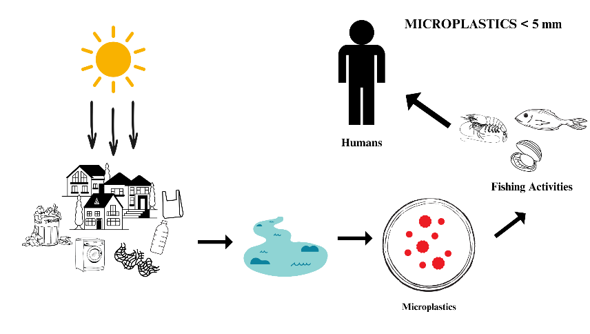 Since the early 20th century, plastics have increasingly replaced natural materials, with global production reaching 359 million tons in 2018. Thailand ranks sixth worldwide in the discharge of plastic waste into natural water bodies, contributing significantly to microplastic pollution through production and waste mismanagement. Although around 14% of plastic packaging is recyclable, a substantial portion of plastic waste is improperly discarded, contaminating rivers and marine environments. This leads to the accumulation of microplastics in aquatic organisms, which can cause internal injuries, digestive blockages, and bioaccumulation through the food chain.