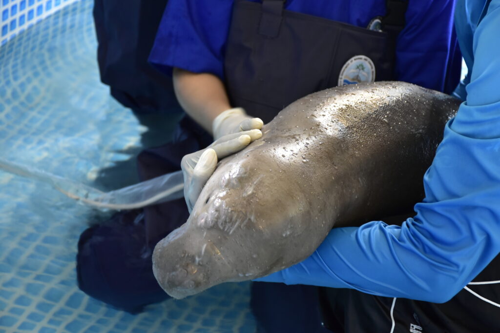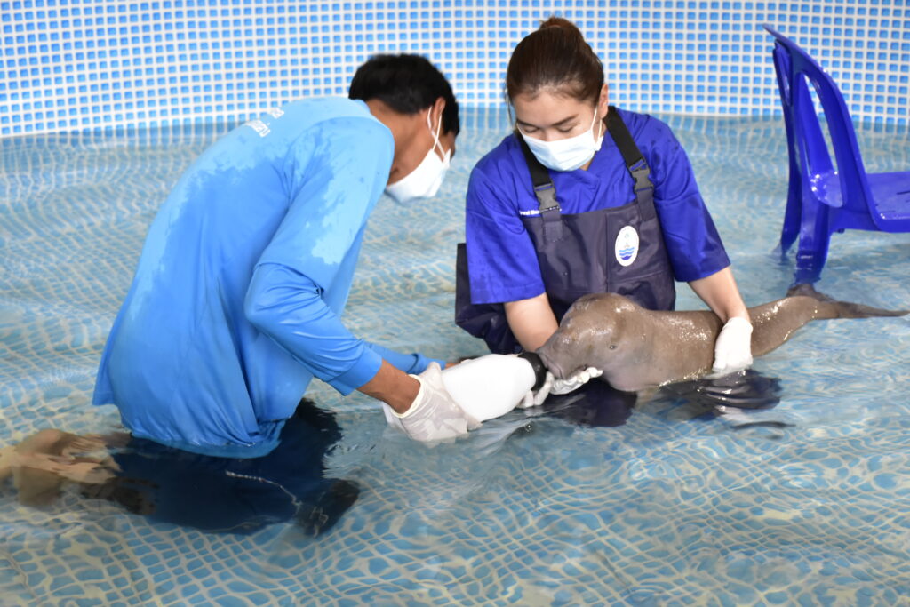 On August 10, 2024, a male dugong calf, 1-2 months old, was found weak and swimming alone near Poda Island, Krabi Province. The calf was brought to the Rajamangala Trang Aquatic Animal Hospital, a facility specializing in the treatment and rehabilitation of sick or injured marine animals.