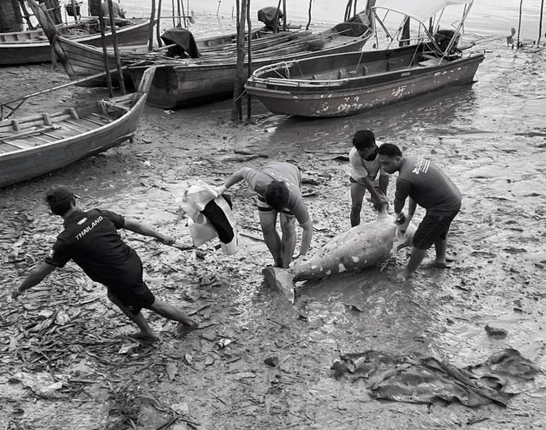 Thailand’s dugong population, classified as Vulnerable by the IUCN, has declined to about 100 individuals, with 65% residing in Trang Province as of 2023. In 2024, 41 dugongs were found dead along the Andaman coast, including five in November. The increase in deaths coincides with the loss of seagrass beds—their only food source—particularly around Libong Island (Trang Province), their primary habitat. As seagrass continues to disappear, dugongs have been forced to migrate toward Krabi and the eastern coast of Phuket. The necropsy of a dugong found in Krabi on November 18, 2024 showed the animal was emaciated, covered in barnacles, and had little seagrass in its stomach, indicating severe malnutrition and a population under critical stress.