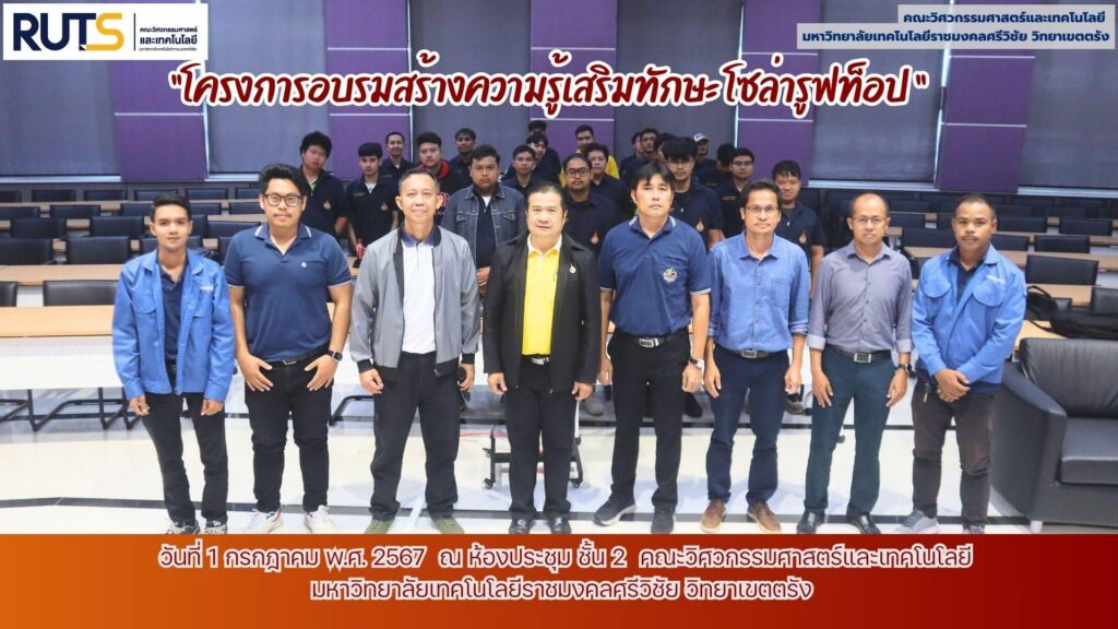 Between July 11–12, 2024, the Faculty of Engineering and Technology, Rajamangala University of Technology Srivijaya (RUTS), Trang Campus, in collaboration with Innovation Technology Phuket Co., Ltd., conducted a training program titled “Solar Rooftop Knowledge and Skills Enhancement.”