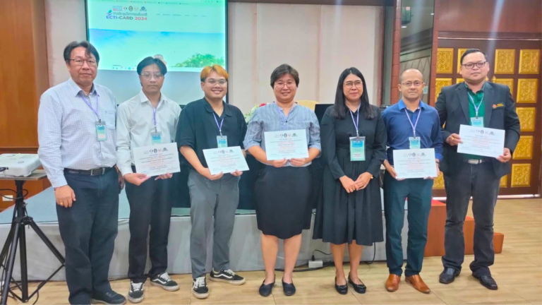 On May 9, 2024, a team of lecturers from the Faculty of Engineering and Technology, Rajamangala University of Technology Srivijaya (RUTS), Trang Campus—Mr. Sarawut Phasaphanthong, Mr. Abideen Jilao, and Asst. Prof. Dr. Paphatsakorn Areekul—received the Best Paper Award for their research titled “Conversion of Wind Energy from Moving Vehicles into Electricity Using a Small Vertical Axis Wind Turbine for Road Safety.” The research presents the design and development of a low-wind-speed, three-phase, 200-watt Vertical Axis Wind Turbine (VAWT) capable of generating electricity from the airflow produced by passing vehicles to charge a 12-volt, 17 amp-hour battery. The paper was presented at the 16th National Conference on Electrical Engineering, Computer, Telecommunications and Information Technology: Applied Research and Development (ECTI-CARD 2024), held from May 7-9, 2024, at Thong Tarin Hotel, Surin Province. The event was jointly organized by the Faculty of Industrial Technology, Surindra Rajabhat University, the Electrical Engineering/Electronics, Computer, Telecommunications, and Information Technology Association (ECTI Association), and the National Institute of Metrology (Thailand).
