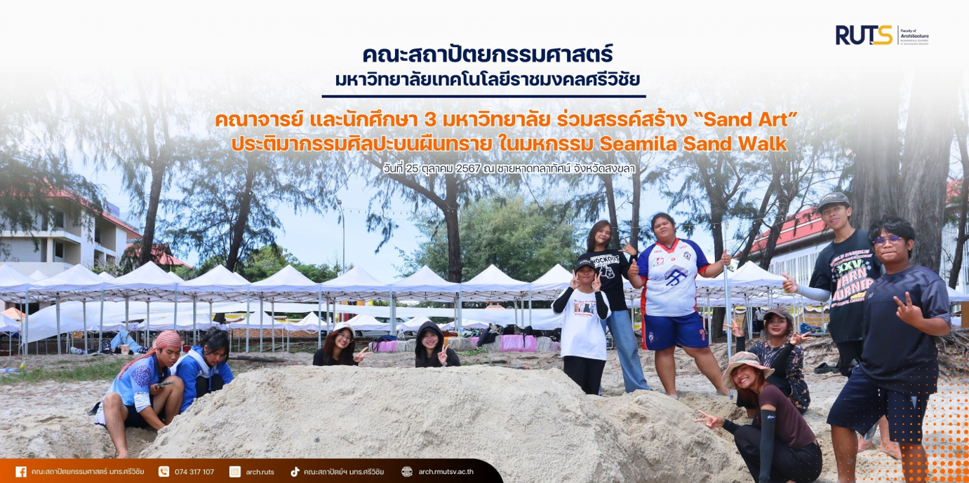 The Faculty of Architecture, Rajamangala University of Technology Srivijaya (RUTS), together with partner institutions from southern Thailand, organized the “Sand Art: Seamila Sand Walk” event at Chalathat Beach, Songkhla between October 25–27, 2024.
