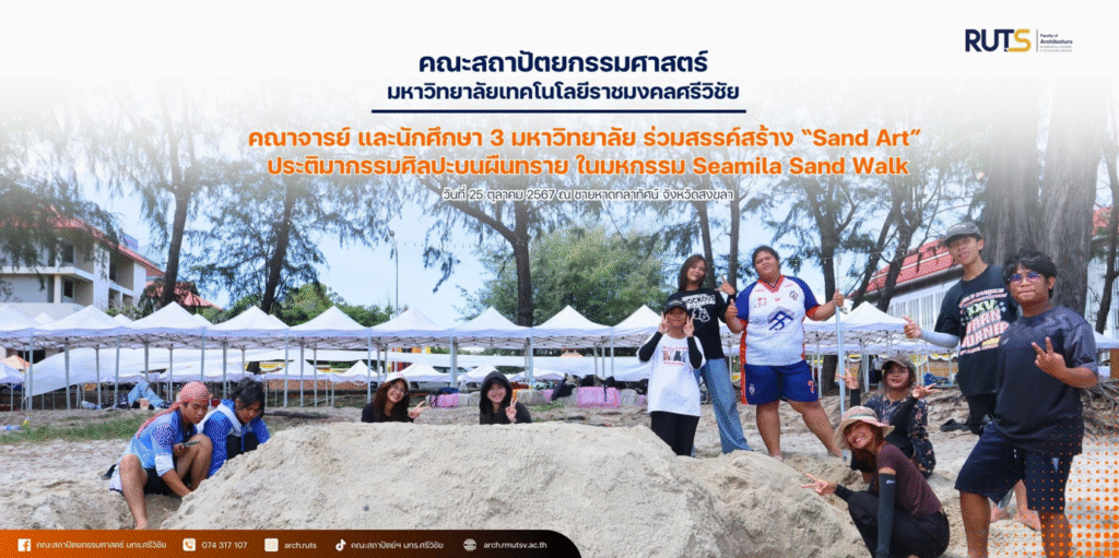 The Faculty of Architecture, Rajamangala University of Technology Srivijaya (RUTS), together with partner institutions from southern Thailand, organized the “Sand Art: Seamila Sand Walk” event at Chalathat Beach, Songkhla between October 25–27, 2024.
