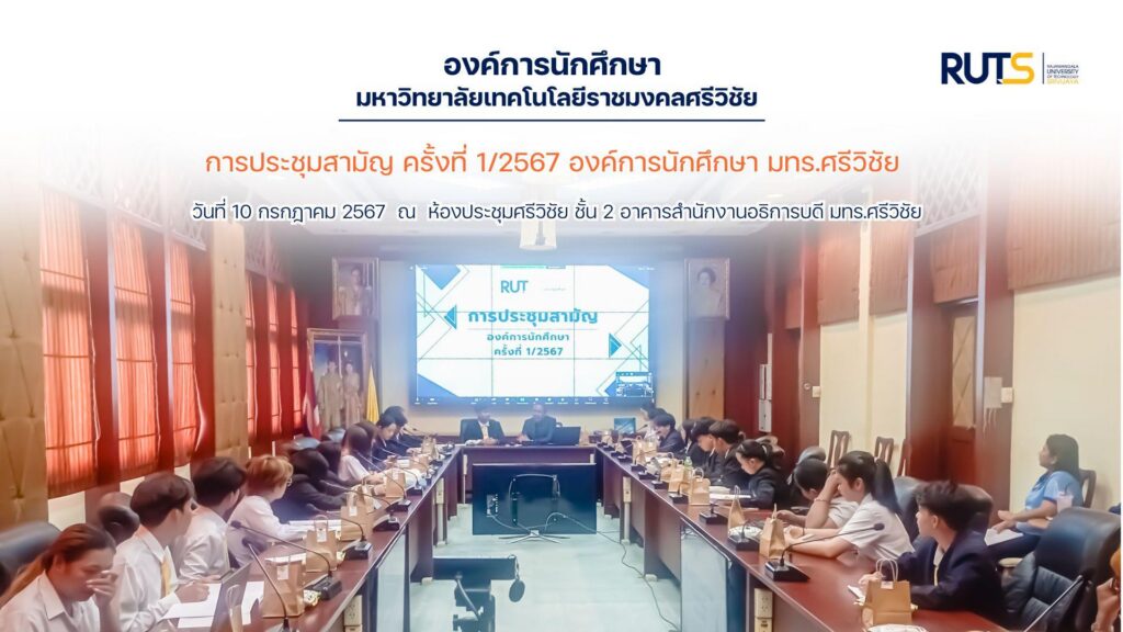 On July 10, 2024, Asst. Prof. Piya Prasongchan, Vice President, attended the 1st Ordinary Meeting of the Student Organization of Rajamangala University of Technology Srivijaya (RUTS) for 2024, at the Srivijaya Conference Room, RUTS.