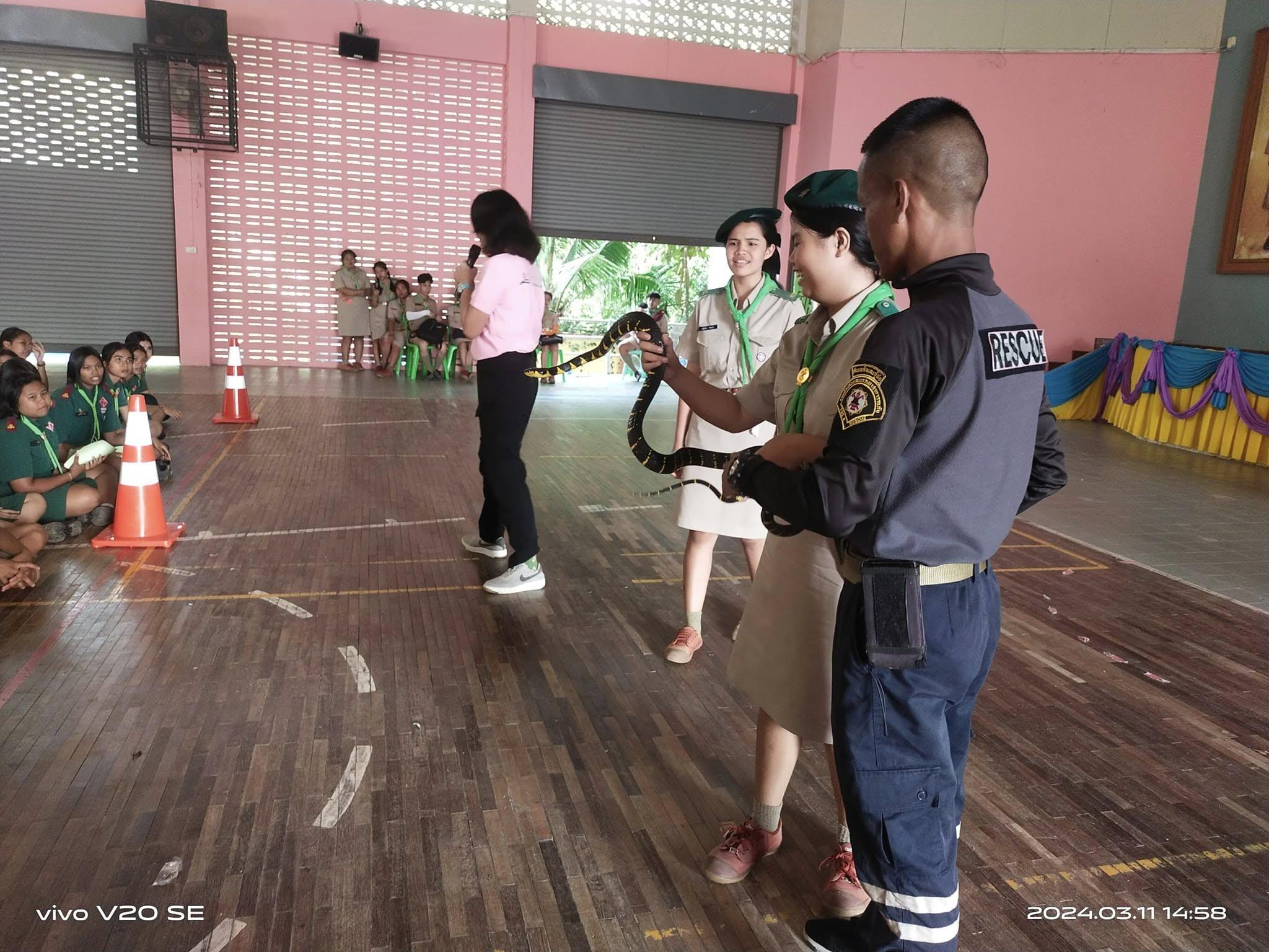 Hands-on learning activities were included to make the session more engaging. Students practiced safe observation techniques, such as using long sticks or maintaining a proper distance during field simulations. They also learned basic first-aid responses for snakebite victims and how to contact local authorities or rescue teams. These practical lessons were designed to prepare them for real-life encounters in rural areas where snake sightings are common. At the same time, students discussed how they could share this knowledge with their families and communities, turning education into community empowerment. Dr. Worawitoo emphasized that coexistence with snakes is possible when people respect their ecological importance and act with awareness rather than fear. This program not only enhanced students’ scientific understanding but also inspired them to become young ambassadors for sustainable ecology. By fostering compassion and responsibility toward wildlife, the project contributed to building a generation that values both human safety and environmental harmony. Ultimately, the activity at Thachang Wittaya School served as a meaningful example of how education can transform attitudes, reduce conflicts, and strengthen the connection between people and nature.