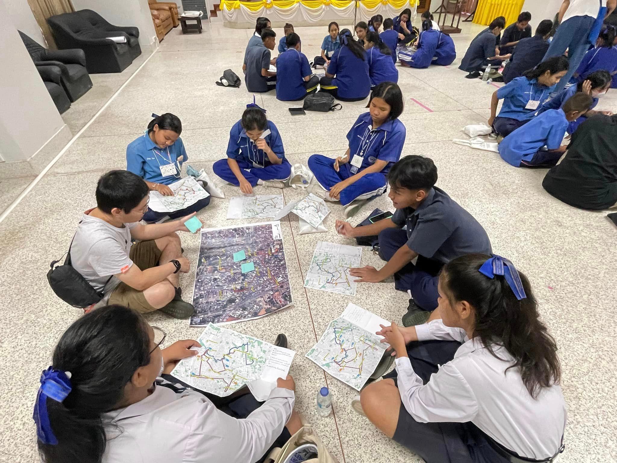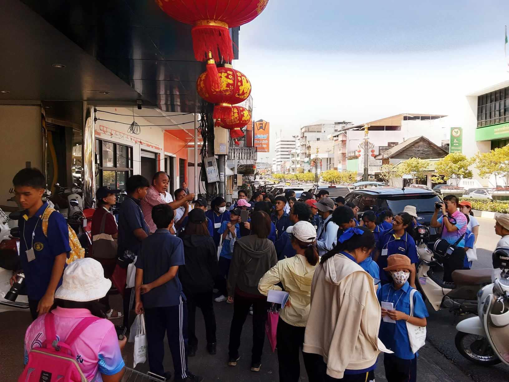 A pilot learning group of 40 students from four schools at primary and secondary levels Satri Rachinee School, Wichienmatu Trang School, Trang Kindergarten School, and Municipal School 2 (Wat Kapang Surin) joined a guided route featuring key urban heritage sites.