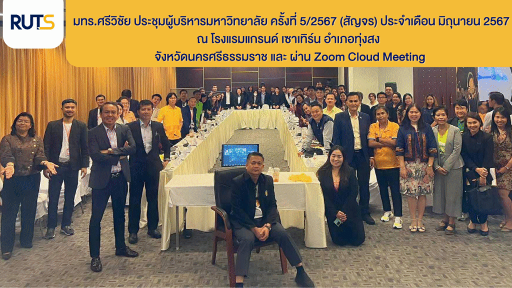 The meeting, attended by university executives, faculty members, and staff, aimed to collaboratively drive the university’s development toward success. It was held at the Grand Southern Hotel, Thung Song District, Nakhon Si Thammarat Province, with additional participation via Zoom Cloud Meeting.