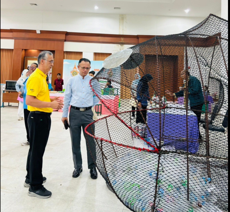 Meanwhile, RUTS Khanom Campus continues to advance the university’s plastic waste reduction policy through the project “Plastic Bottle Waste Separation to Save Khanom Sea.” The initiative welcomed representatives from Che Bilang Subdistrict Municipality, Satun Province, led by Mayor Mr. Abdulwaris Bilangload, for a study visit and knowledge exchange. The visit was hosted by Asst. Prof. Taweesak Sripunga, Director of the College of Industrial Technology and Management, with Dr. Suporn Ritthipakdee, Head of the Department of Engineering, coordinating project operations.