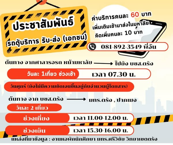 Figure 1: Sample Announcement for the Shared Van Service Schedule at Rajamangala University of Technology Srivijaya (RMUTSV), Trang Campus.