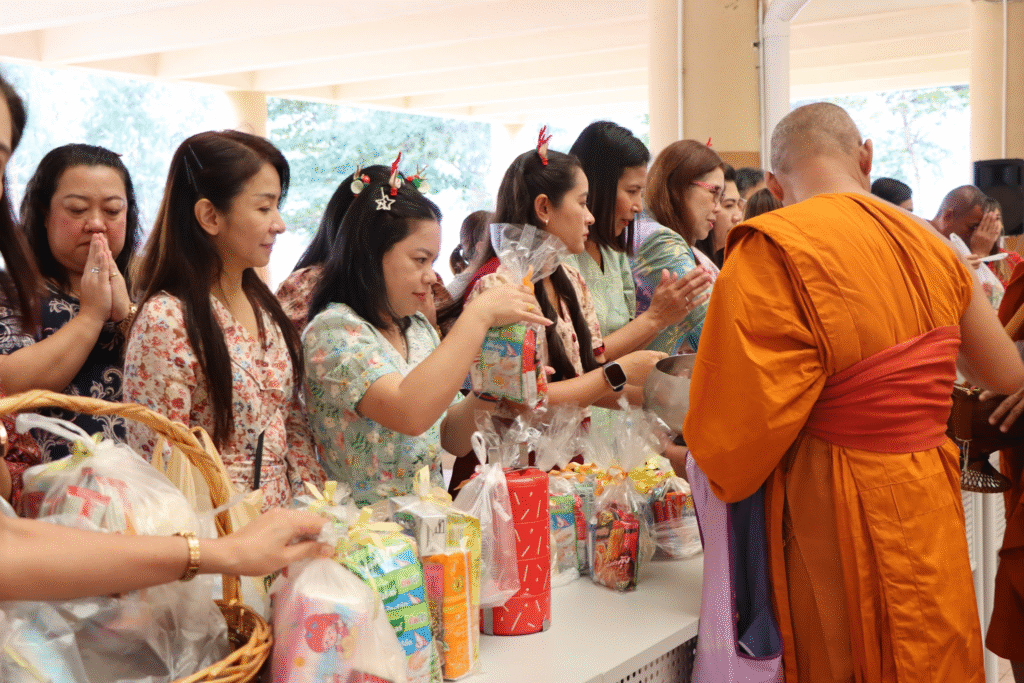 On December 24, 2024, the Faculty of Liberal Arts at RUTS organized a year-end and New Year celebration to foster a sense of community and well-being among staff members. The event began with a Buddhist merit-making ceremony and almsgiving to monks, symbolizing good fortune and the start of a prosperous new year.